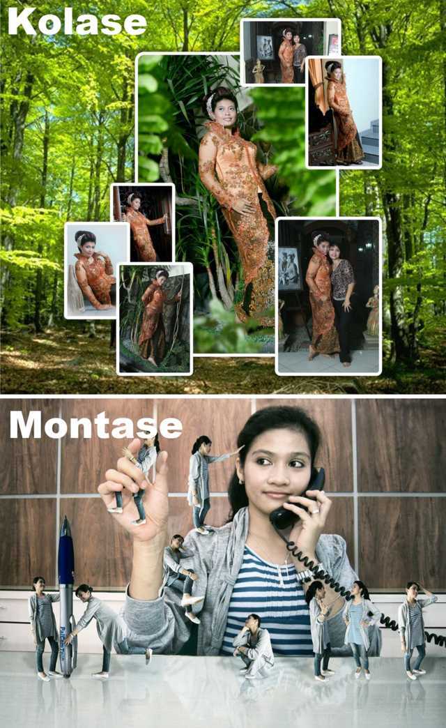 Bicara mengenai Photo BLEND 3D maka ada baiknya kalo mengenal juga tentang apa itu montase, karena memang software ini gunanya adalah untuk membantu kita membuat montase tadi. Montase, menurut Kamus Besar Bahasa Indonesia, adalah komposisi gambar yang dihasilkan dari percampuran unsur dari beberapa sumber. Kalo dilihat sekilas teknik montase ini hampir tak ubahnya dengan kolase, karena keduanya mengambil unsur dari benda-benda sebagai hasil karya. Namun kalo kita cermati lagi maka kita akan menemukan perbedaan dari keduanya. Nah kalo masih belum paham bisa melihat contoh perbedaan kolase dan montase dibawah :